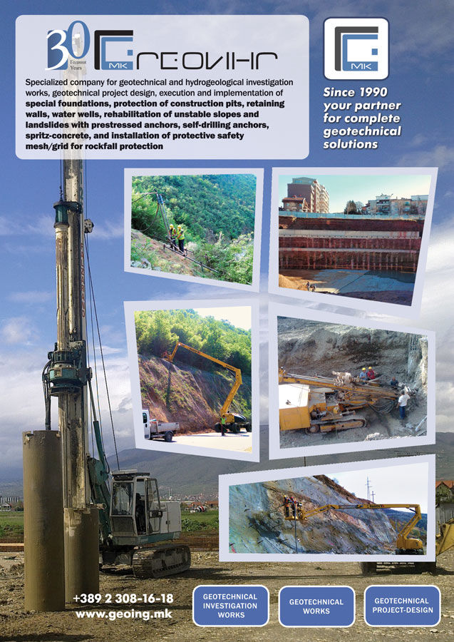 • Заштита на градежни јами, санации на клизишта и потпорни зидови со методи на армирано-бетонски шипови, дијафрагми, шпундови подгради, анкери итн.
